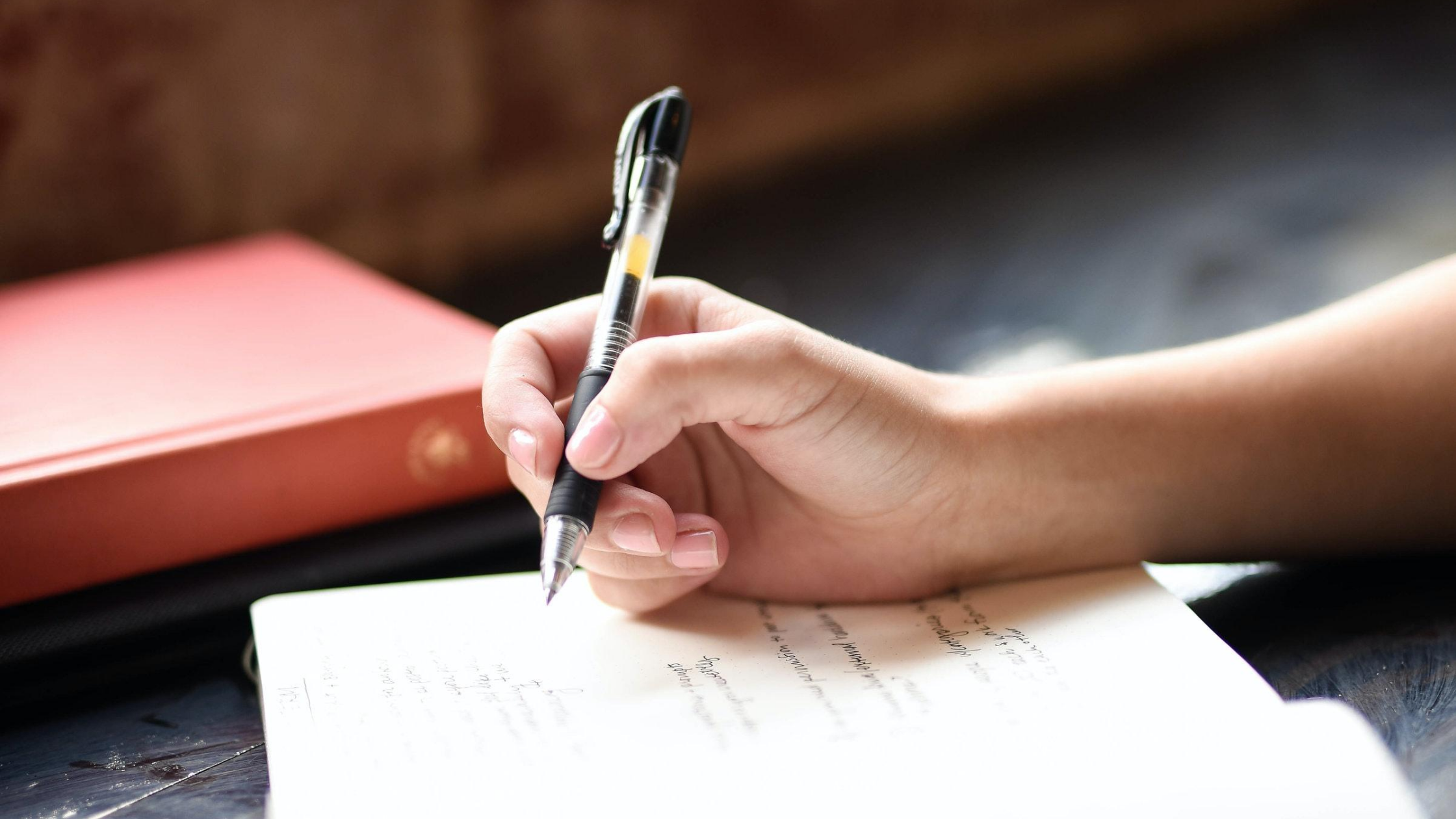 a hand holds a pen above a blank page, why do you write?